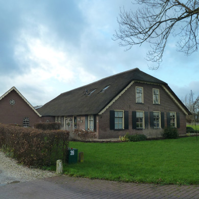 Hoeve "Engherweide". Boerderij onder rieten wolfdak midden 19e eeuw. Voorgevel met vensters, voorzien van luiken en zesruitsschuiframen uit de bouwtijd. In de zijgevel drie vensters met zesruitsschuiframen en luiken en deur met eenvoudig bovenlicht.
