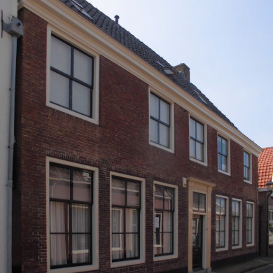 PAND met lijstgevel met dodekop geverfd, nieuwe spui.