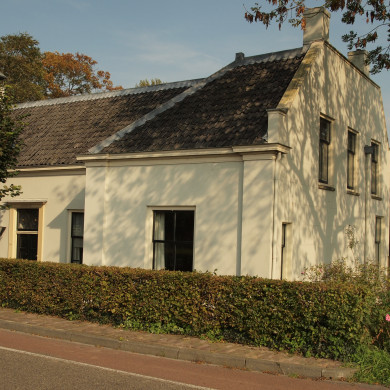 "WELGELEGEN", BOERDERIJ, dwarstype met opkamer, lage bouw, grauw gepleisterd, zeer fraai 17e eeuws rieten dak, ernaast zomerhuis gelegen.