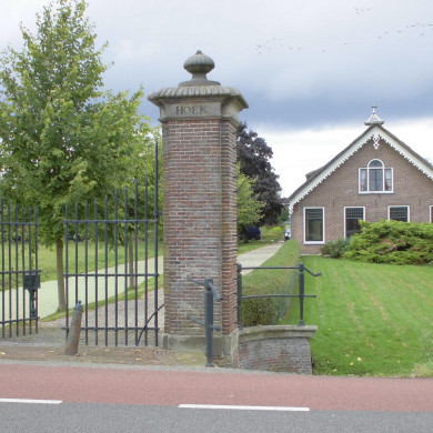 "OUDERHOEK", HEK met twee bakstenen pijlers met natuurstenen eenvoudige bekroning.