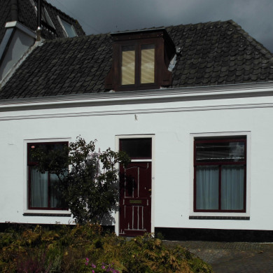 Langgerekte gepleisterde WONING met topgevel aan de Vechtzijde.