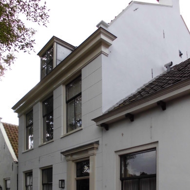 PAND met gepleisterde lijstgevel 18e eeuw, met mansardedak.