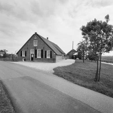 In oorsprong wellicht 17e eeuwse boerderij, behorend tot het middenlangsdeeltype van de hallehuisgroep, onder rieten wolfdak, met betrekkelijk lage zijmuren; het woongedeelte bevat rechts een onderkelderde opkamer met een negenruitsschuifvenster; de voorgevel bezit een gecementeerde plint, ontlas