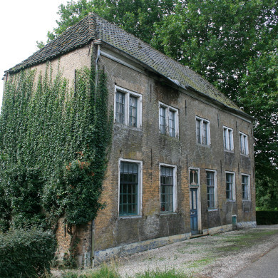 Boerderij (XVII). De voorgevel (XVII) is in de 18e eeuw gewijzigd. Uit de bouwtijd zijn behalve de mooi gekleurde rijke baksteen nog een 5-tal boogjes met zandstenen aanzet en sluitstukken, twee baksteen mozaieken en een drietal gevelankers over.