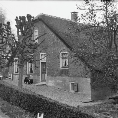 BOERDERIJ "De Voshoeve". Gevel gepleisterd in blokken. Fraaie gesmede muurankers. Goede roedeverdeling. Beganegronds luiken.