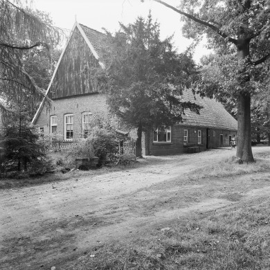 "Het Gewaarde Erve Honiglo". Boerderij van Saksische type met hoog, door pannen gedekt zadeldak, aan de voor- en achterzijde met houten voorschotten en topmakelaars. Overstek op korbelen aan de achterzijde. Voorgevel vernieuwd in traditionele trant 1921. Op het erf wagenloods met pannen zadeldak en voorschot.