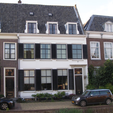 Pand met lijstgevel. Schuifvensters. Dakkapel. Voordeuromlijsting.