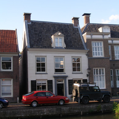 "Vredehoop". Pand met fraaie gevel met rechte kroonlijst met consoles. Gesneden deuromlijsting, 18e eeuw. Uitspringende kamer links. 18e eeuws stoephek.