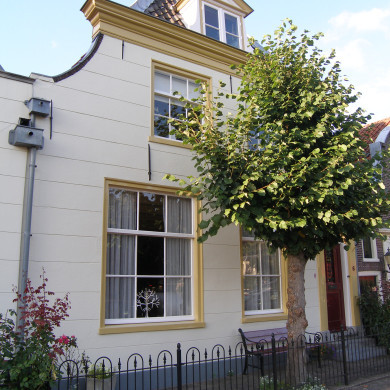 Pand met lijstgevel 19e eeuw. Schuifvensters. Dakkapel.