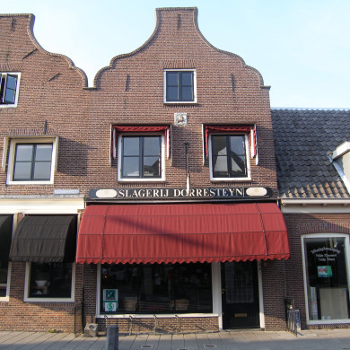 Pand met klokgevel, 17e eeuw. Gevelsteen met hert. Winkelpui. Vormt een geheel met het buurnummer 2.
