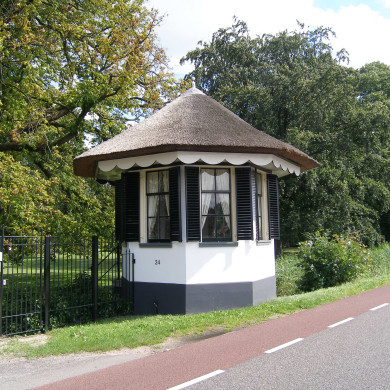 Omschrijving onderdeel 3: (bij Zandpad 29; op de bijbehorende kaart aangegeven met nr.3) TOEGANGSHEK EN RONDBOOGBRUG behorende tot de buitenplaats Gansenhoef.