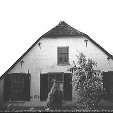 Boerderij, gepleisterd dwarshuis, mogelijk in wezen 17e eeuw.