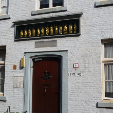 HUIS der Twaalf Apostelen, genaamd De Belick. Drie lage vleugels om een binnenplaats, achttiende eeuw, met segmentboogomlijstingen van Naamse steen zonder sluitstenen. In de moderne voorgevel zijn de houten beelden opgenomen van Christus en de apostelen, eerste helft zestiende eeuw.