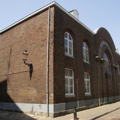 Voormalige CAPUCIJNENKERK, blijkens een steen in de westgevel uit 1615. Hersteld na brand in 1681.