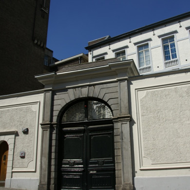 Neo-gotische KLOOSTERKAPEL van de Zusters Ursulinen, gesitueerd in de gesloten wand van de Capucijnenstraat. Gebouwd in 1890 naar ontwerp van architect Johannes Kayser, in opdracht van de familie Claerenboets te Maastricht.