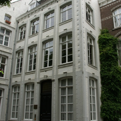 Huis, XVIII c, dat t.o.v. het vorige een travee uitspringt. Lijstgevel met segmentboogingang en vensters in Naamse steen, verticale reliefbanden en hoekblokken. De geprofileerde ingangsomlijsting met Lodewijk XV-schildje. Twee dakkapellen.