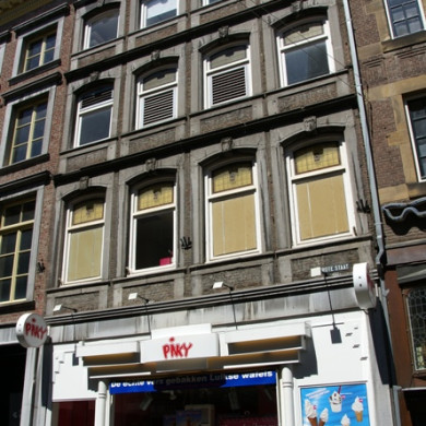 WINKELHUIS van de N.V. Toebackslijterij "d'Hollandse Damper", 1919-1920, in rationalistische stijl. Gesitueerd op de hoek van Munstraat, Kleine Staat en Grote Staat. Gebouwd naar een ontwerp van de Maastrichtse architect V. Marres, in opdracht van bovengenoemde N.V..