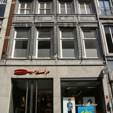 Huis met lijstgevel, XVIII. De rechthoekige vensters van de eerste en tweede verdieping in hardstenen in verticale richting aan elkaar gekoppelde omlijsting. Op de bovenverdieping segmentboogvensters in hardsteen. Pui met rondboogopeningen tussen gekoppelde halfzuilen XIX.