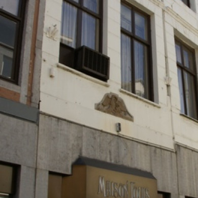 Huis met lijstgevel, XVIII B? met vensters in hardstenen segmentboogomlijstingen, afgedekt met rankwerk en voorzien van sluitstenen, die bovenaan uitlopen in een voluut. Hoofdgestel met gebeeldhouwde consoles, die onderaan eindigen in een bladmotief, en paneelvullingen.