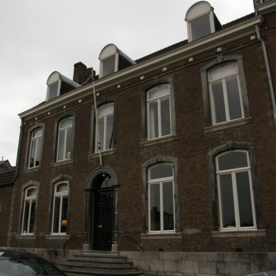Huis met lijstgevel, XVIIId, voorzien van enige segmentboogvensters in Naamse steen. Rechts in de gevel een koetspoort in een omlijsting van Naamse steen met Lodewijk XVI-versiering. Bovenlicht met monogram. Rechter zijgevel gedeeltelijk van mergel, XVI ? Lelijke kap uit recenter tijd.