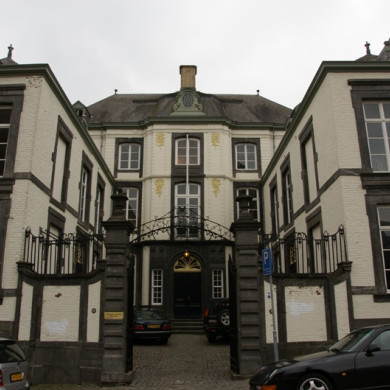 HOEKHUIS van vier vleugels om een binnenplaats. Zuidvleugel uit mergel met vensters in segmentboogomlijstingen, onder een wolfdak, XVIIIc. Met uitzondering van de zuidelijke buitengevel geheel gepleisterd en ook verder ingrijpend gewijzigd in XIXc.