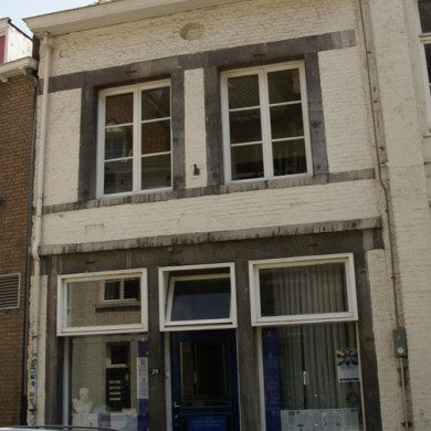 HUIS, XVIIc. De straatgevel met drie doorgaande pilasters, die een hoofdgestel met consoles dragen. Hierboven een top met in- en uitgezwenkte vleugelstukken en een tussen pilasters gevatte middenpartij. Vensters gewijzigd. Ook de zijgevel draagt een Maaslands hoofdgestel met consoles.