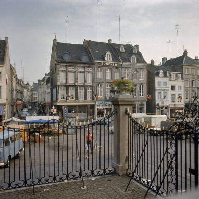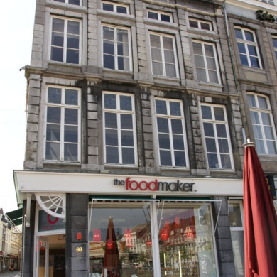 HOEKHUIS, XVIIId, met lijstgevel van hardsteen, voorzien van een attiek; geleed door geblokte pilasters en omgekorniste profiellijsten. Pui modern. Twee dakkapellen met gebogen fronton en vleugelstukken. Gevelsteen.