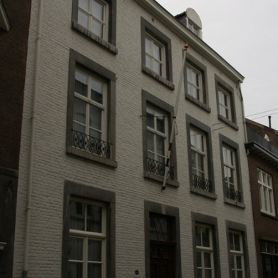 Overblijfsel van de westvleugel van het voormalige Jezuietenklooster. Opgetrokken in de trant der zgn. Maaslandse renaissance met hoekblokken, horizontale banden, vensteromlijstingen en kroonlijsten op consoles van natuursteen. Op de noordoosthoek een uitgebouwde traptoren uit 1609.