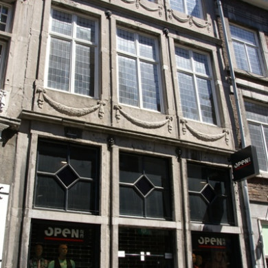 Huis met gevel van hardsteen, XVIIa, in dezelfde trant als die van het vorige huis. Vensterkruisen, middenstijlen uitgebroken en onderdorpels verlaagd. Dakkapel met gebogen bekroning en vleugelstukken.