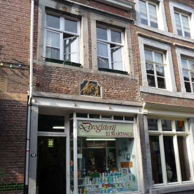 Huis met lijstgevel. Kozijnen van Naamse steen, die de kruisen verloren hebben. Gevelsteen met Sint Maartensgroep hoC teMpore DestrUltUr nUnC erIgItUr (1723). Pui modern.