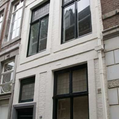 Huis met lijstgevel, XVIII A, voorzien van kozijnen van Naamse steen, waaruit de kruisen verdwenen zijn; tweelichtvensters op de bovenverdieping en horizontale profiellijsten. Onder de bovenste vensters verticale reliefbanden en paneelvullingen.