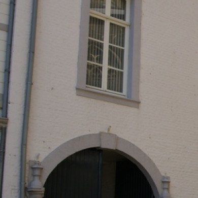 Rondbogige koetspoort in Naamse steen geflankeerd door halfzuilen met vaasvormige bekroningen. Achtergelegen huis, XVII A, met een hoofdgestel met consoles.