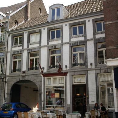 HUIS, waarvan de voorgevel is bekroond door een top met gebroken fronton en ingezwenkte dekstukken van mergel, die uitlopen in een voluut. Onder de topgevel loopt een hoofdgestel met consoles. In de top een zolderdeur in mergel met gedrukte boog. Vensterkruisen uitgebroken. Gevelsteen met 1694.