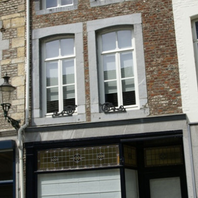 Huis met lijstgevel, XVIII. Kozijnen van Naamse steen, die de kruisen verloren hebben. Ingang in Naamse steen, geflankeerd door aangekoppelde segmentboogvensters in Naamse steen. Op de bovenverdieping lateiboogvensters in Naamse steen.