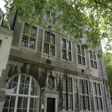 Refugie van Meerssen. Hoog gebouw, waarvan het zadeldak op zij door een trapgevel wordt afgesloten. Voorgevel van Naamse steen met naar boven lager wordende verdiepingen, gescheiden door profiellijsten en voorzien van kruis-, resp. tweelichtvensters van Naamse steen. Gevelsteen met 1690 en twee wapens. Links een rondbogige koetspoort en een ingang onder een ovaal bovenlicht. Dakkapel. In de uit mergel opgetrokken rechter zijgevel twee grote kraagstenen die tegenwoordig een balkon dragen. Achtergevel van vakwerk. Lagere achtervleugel langs het Wijkergrachtje, waarvan de mergelstenen gevel, XVI, tussendorpelvensters met accoladebogen bezit. Inwendig een balustertrap, XVII d.