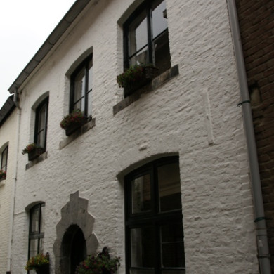 Huisje met lijstgevel, XVIII, voorzien van segmentboogvensters in Naamse steen. Pui modern.