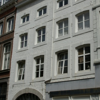 Huis met lijstgevel van Naamse steen, XVIII A, voorzien van rechthoekige vensters, waarvan de kruisen zijn uitgebroken; op beide bovenste verdiepingen zijn de tweelichtvensters echter nog gaaf. Geblokte dammen en onder de vensters panelen. Dergelijke panelen en dammen ook onder de daklijst.