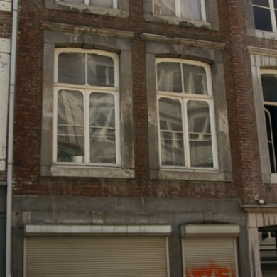 Huis met smalle lijstgevel, XVIII. Segmentboogvensters in Naamse steen. Twee dakkapellen boven elkaar.