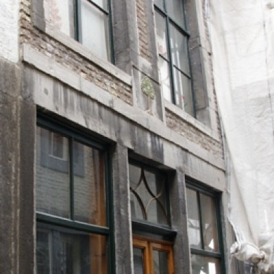 Huis met smalle lijstgevel, XVIII. Vensters ten dele in Naamse steen. Ingang met aangekoppeld venster in Naamse steen.