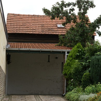 Hoeve om binnenplaats. Poortgebouw van mergel onder een zadeldak, XVIII B, met duivenslag en poortomlijsting van Naamse steen. Woonhuis van mergel, XVIII B. De haaks hierop gelegen schuur, eveneens uit mergel, stamt blijkens een gevelsteen in de topgevel uit 1771.