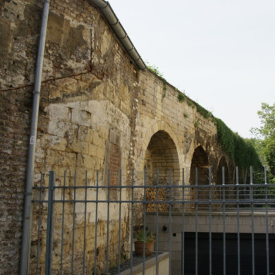 Een laatgotische poort met gedrukte geprofileerde poort, herbouwd tegen de 13e eeuwse stadsmuur.