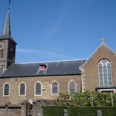 R.K.KERK, in 1784 gebouwd door M. Soiron, in 1893 uitgebreid. Communiebank, 1849, preekstoel, plm 1800, orgelgalerij XIX A.