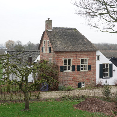 Gepleisterde boerderij, 18e eeuw, onder rieten schilddak. Links een opkamer van twee vensterassen, waaronder tongewelfde kelder.