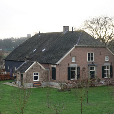 Boerderij uit het midden van de 19e eeuw onder met riet gedekt wolfdak, aan de achterzijde met overstek. Voorgevel met vlechtingen en vensters met zesruitsramen en luiken. Bovenvensters met vierruitsramen. Het zomerhuis naast de boerderij valt niet onder de bescherming.