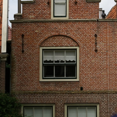Smal zeventiende-eeuws pandje, bakstenen trapgevel.