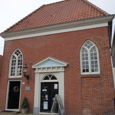 V.m.Synagoge. Rechthoekig bakstenen gebouw uit 1808 met in de voorgevel spitsboogvensters en een classicistische ingangspartij. Inwendig de vrouwengalerij nog aanwezig, bereikbaar door een deur links in de voorgevel. De oorspronkelijke balkenzoldering, in het midden waarvan het beloop van het gedrukte tongewelf nog zichtbaar is, is op lager niveau opnieuw toegepast. Het gebouw is thans verminkt door het slopen van de kap en de ingangspartij.