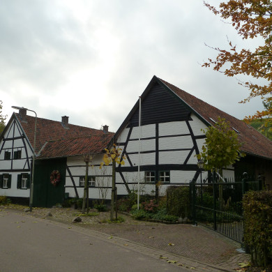 Hoeve met binnenplaats, grotendeels van vakwerk, opgevuld met baksteen en leem, gedeeltelijk gemetseld van mergel; XIX A.