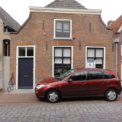 Huis onder schilddak en met lijstgevel waarvan de bovenhoeken ingezwenkt zijn. Zes- en vierdelige schuiframen. Begin 19e eeuw. Met stoep.