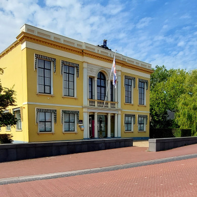 Raadhuis. In 1843 naar ontwerp van Th. Romein voltooid gebouw, alleen in de begane-grondse vensters beschadigd; overigens karakteristiek voor deze Friese bouwmeester en een van zijn meest doorwerkte ontwerpen.