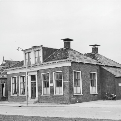 Laag woonhuis (oorspronkelijk schoolhuis ?) waarvan het voorste gedeelte, gedekt door laag schilddak met hoekschoorstenen waarop borden, gaaf is. Door Ionische pilasters met hoofdgestel omlijst ingang, geblokte kroonlijst en zesruitsvensters. Waarschijnlijk wat later toegevoegde doch niet onaardige dubbele dakkapel.